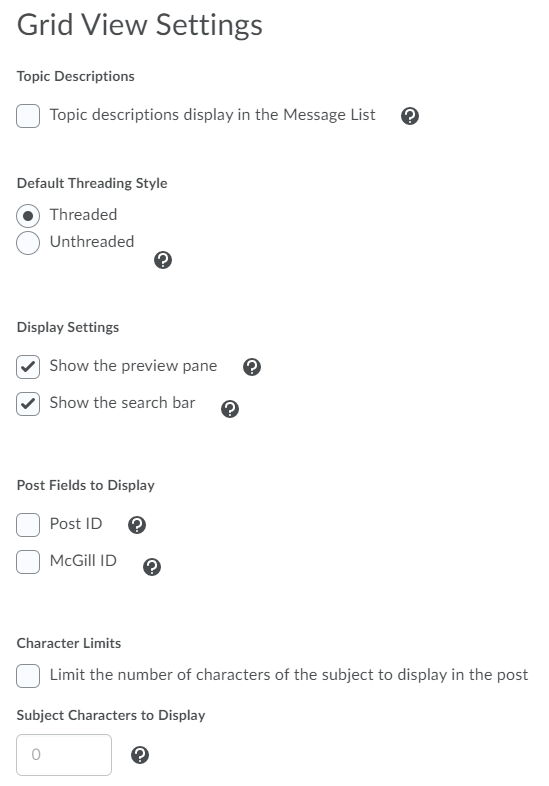 Up Vote/Down Vote Rating Scheme: Adds a plus or minus sign to the left of all threads and replies. Students can up or down vote each other’s messages.