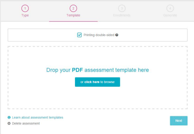 Create an assessment template in Word or LaTeX and save as a .pdf. Formatting specifications should be met to ensure the QR codes do not interfere with the exam. A template is available to guarantee the spacing criteria is correct.