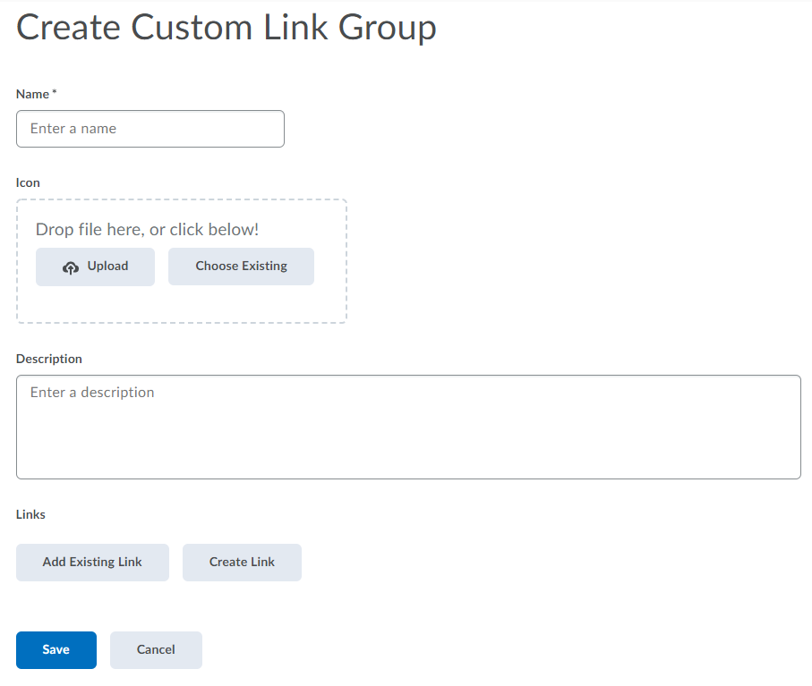You can create Custom links and add them to the navigation bar of your course to direct your students to web pages outside myCourses, or link to files and activities within myCourses. You can also link to a Learning Technology Integration (LTI) tool such as Perusall or Ed Discussion.