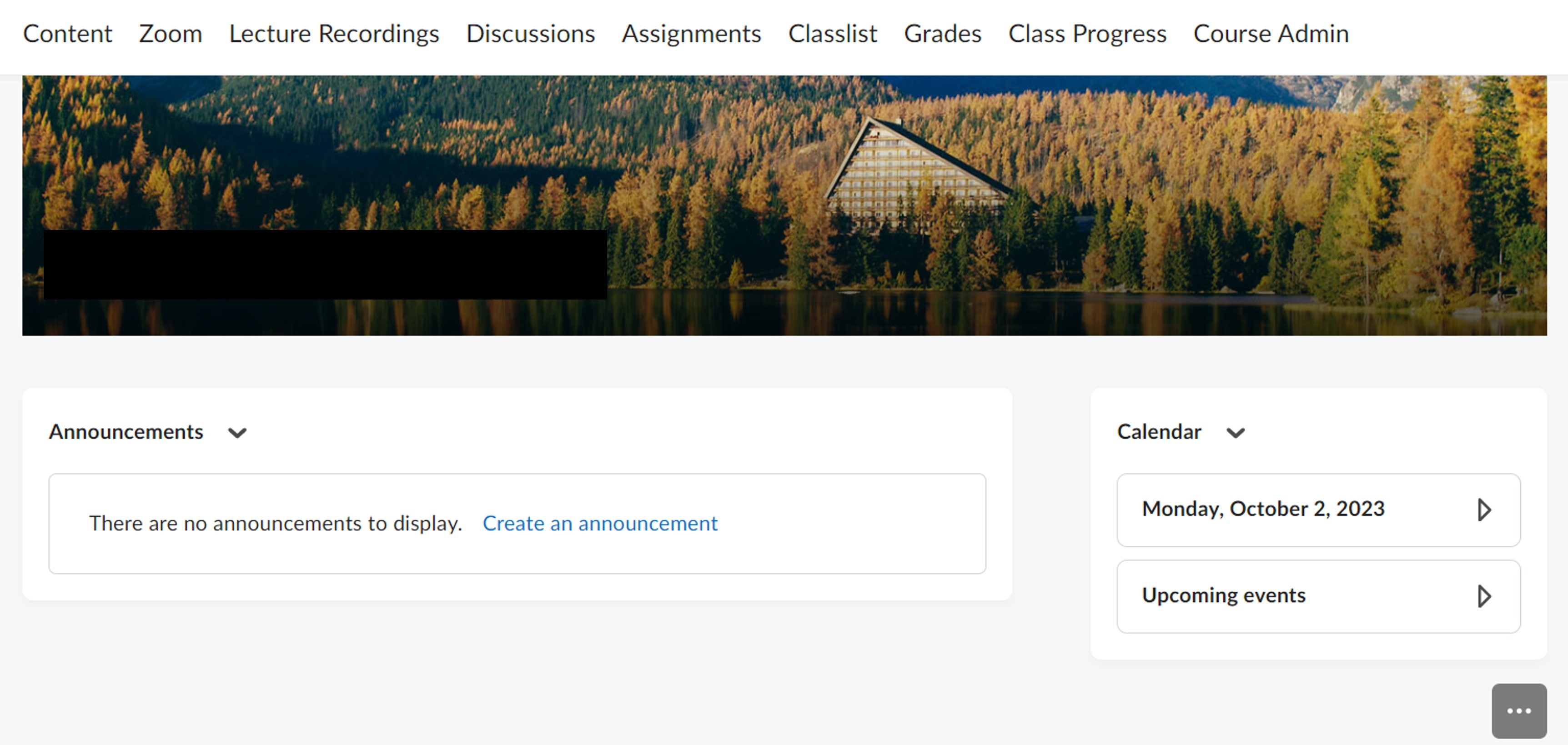 Your Course Home page is the first thing that students see when they log into your course. The below screenshot shows the default layout of the Course Home page.