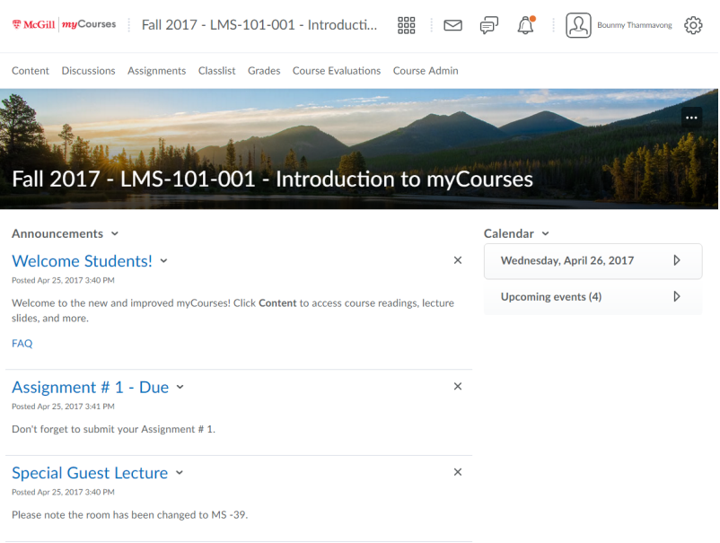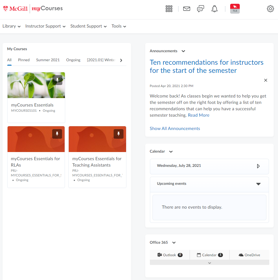 The Announcements widget on the My home page is centrally controlled by McGill administration. It communicates important updates and information to instructors and students.