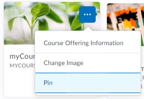 You can pin specific courses so that they appear on your My home page. Use the myCourses widget or click the three dots ( ... ) on the course tile and select Pin.