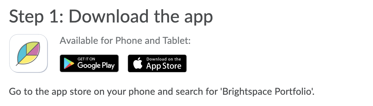 To collect evidence, students or instructors can use the Portfolio app for iOS® or Android™. The Portfolio app is available for download from any global Google Play™ store or Apple App Store®. Below are the steps to get started with using the Portfolio App: