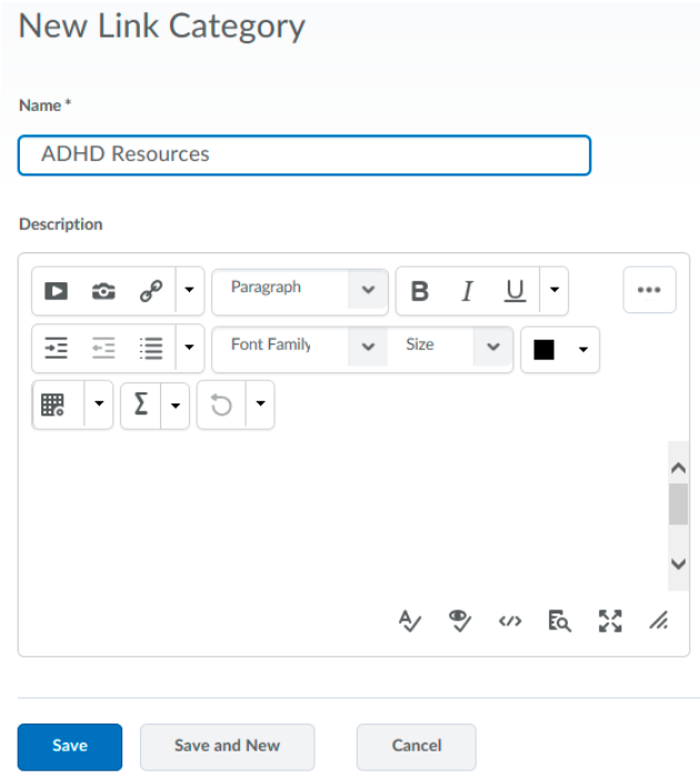 Select an existing Category from the drop-down list at the top of the page or click [New Category] to create a new one. All links must belong to a category.