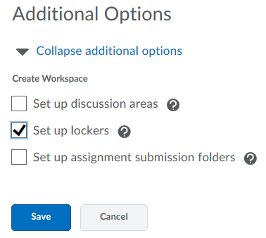 Lockers are storage areas in myCourses where you can create or upload files. There are two types of lockers: