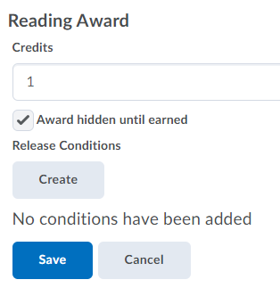 You can add release conditions to an award and release other content or another award to learners when they achieve the award requirement that you define.
